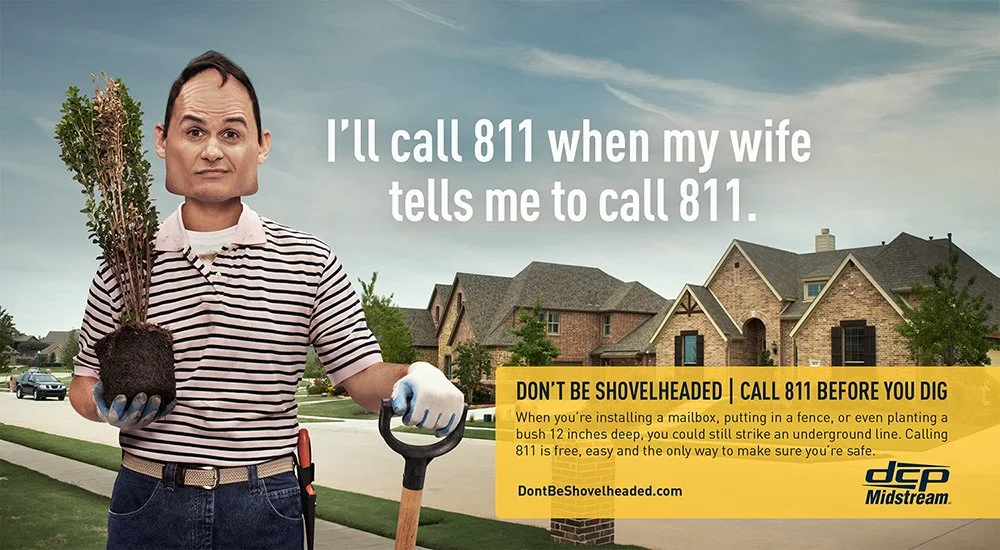 You're required by law to call 811 before digging. Contractors and ranchers knew this, yet they still refused to call. It results in costly accidents and worst-case scenario - death. DCP Midstream, the nation's largest transporter of natural gas, needed to respond. The result was an awareness campaign that coined a term for “pigheaded” behavior associated with refusing to call. “Don’t be Shovelheaded” significantly decreased the number of line strikes within a year.