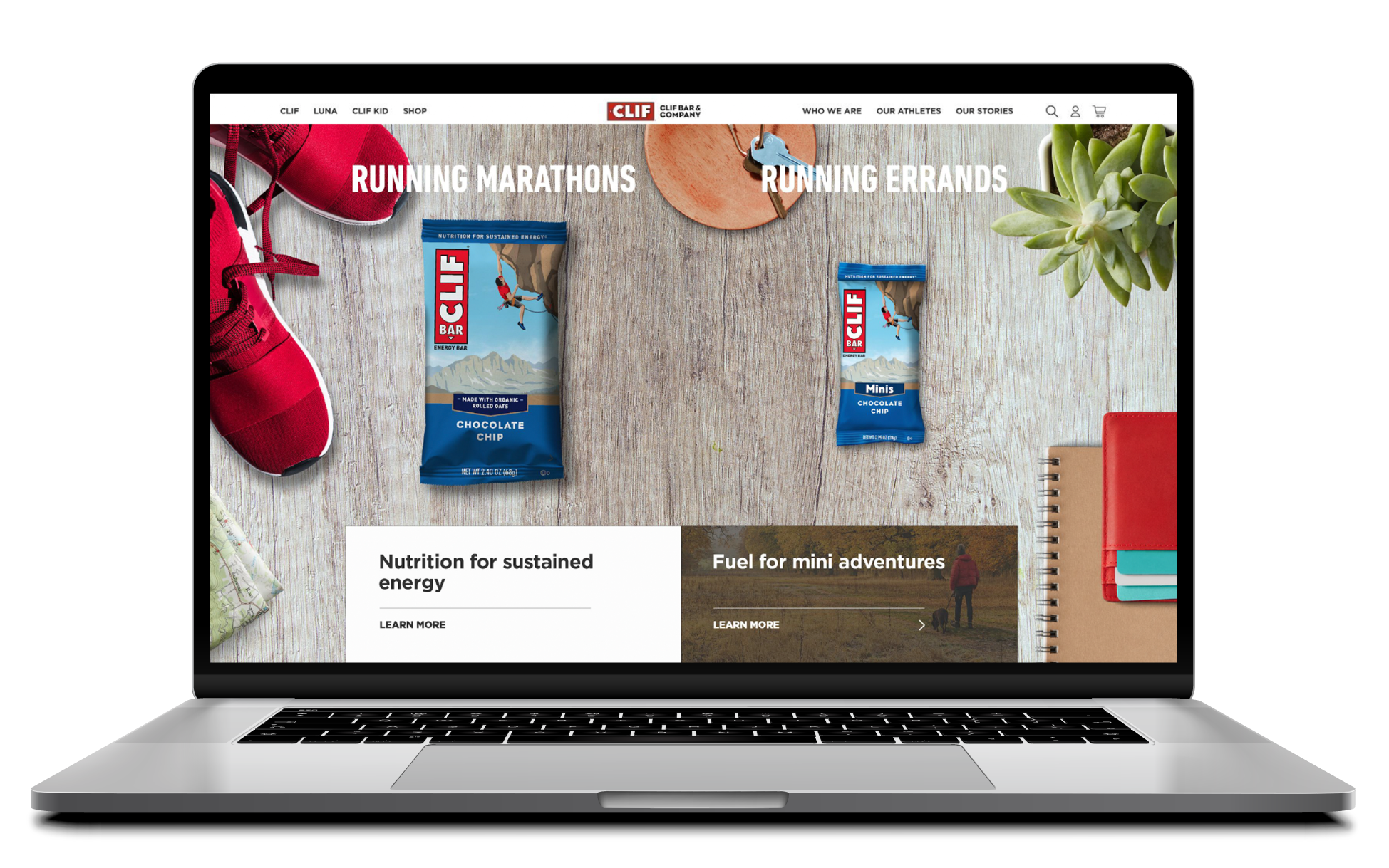 As Clif Bar became the choice for serious athletes, Minis hit the market as the perfect snack for everyday energy. The Minis packaging was nearly identical to the original–the only difference was the size–which made launching a new product a challenge. We took a comparison approach to show perspective and came up with “Fuel for Mini Adventures”. No, not for expeditions. For walks around the block.